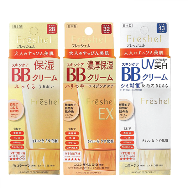 - BB Cream Freshel giúp che khuyết điểm thì được 90%, nhưng nhìn rất tự nhiên, kiềm dầu và dưỡng ẩm tốt, quan trọng có cả chống nắng và thành phần làm trắng da tự nhiên và collagen,acid hyaluronic chăm sóc da.