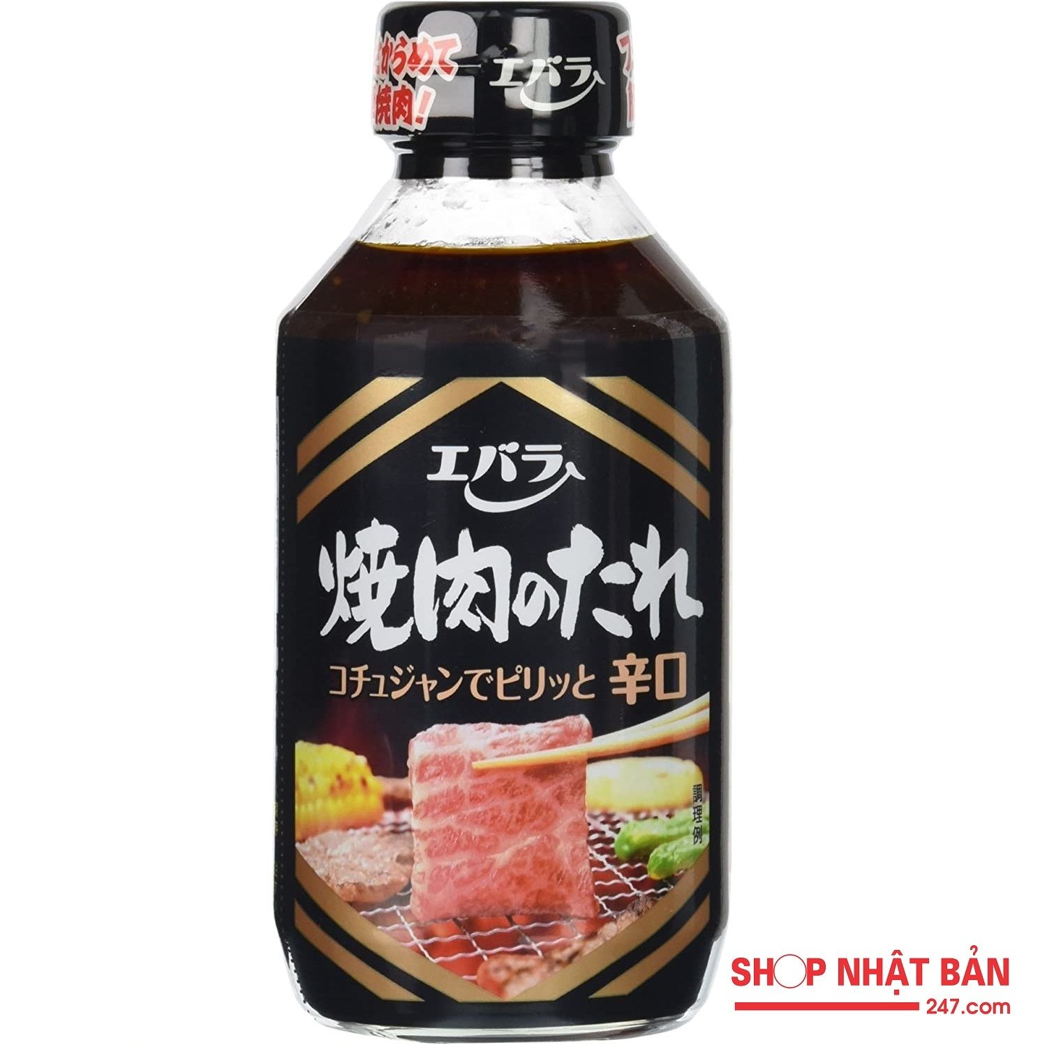 - Ebara Yakiniku no Tare được làm từ nước tương và trộn với các nguyên liệu được lựa chọn cẩn thận như táo, tỏi, hành, mè. Phiên bản cay của Ebara Yakiniku no Tare được bổ xung thêm Gochujang (tương ớt đỏ của Hàn Quốc) mang đến vị umami phong phú với hiệu ứng ngọt và cay cho món thịt nướng của bạn thêm phần hấp dẫn!