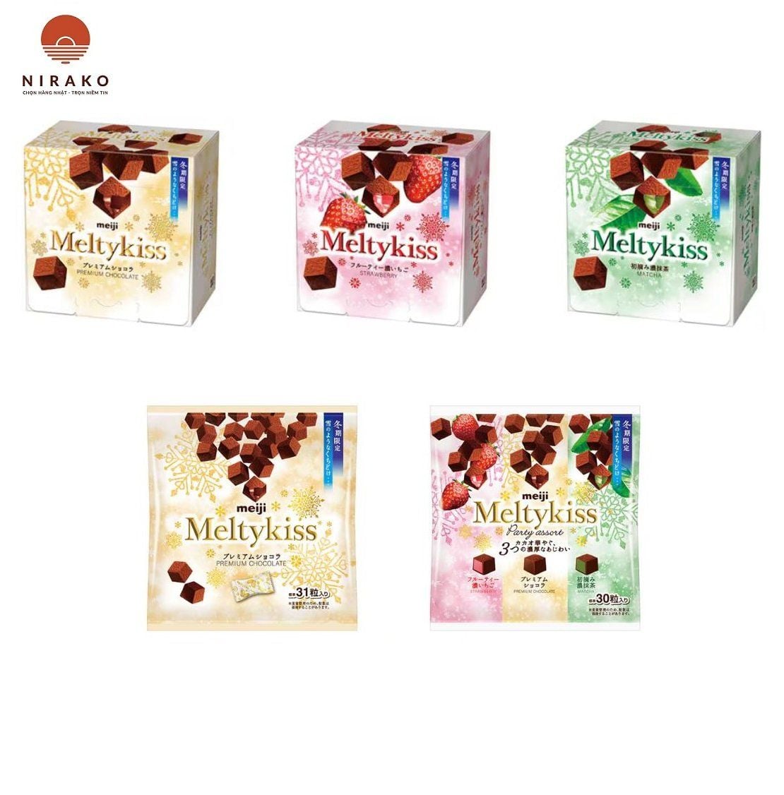 - Socola Meltykiss vị Matcha 56gr. Meiji là một loại bánh truyền thống, mang nét đặc trưng của người Nhật Bản. Loại bánh này thường được sử dụng làm quà trong dịp đầu xuân, năm mới ở xứ sở hoa anh đào với ý nghĩa cầu chúc những điều tốt lành, thịnh vượng sẽ đến trong năm mới. Mềm mịn, tan nhanh trong miệng, mang đến cho người dùng cảm giác ngọt ngào của socola tươi.